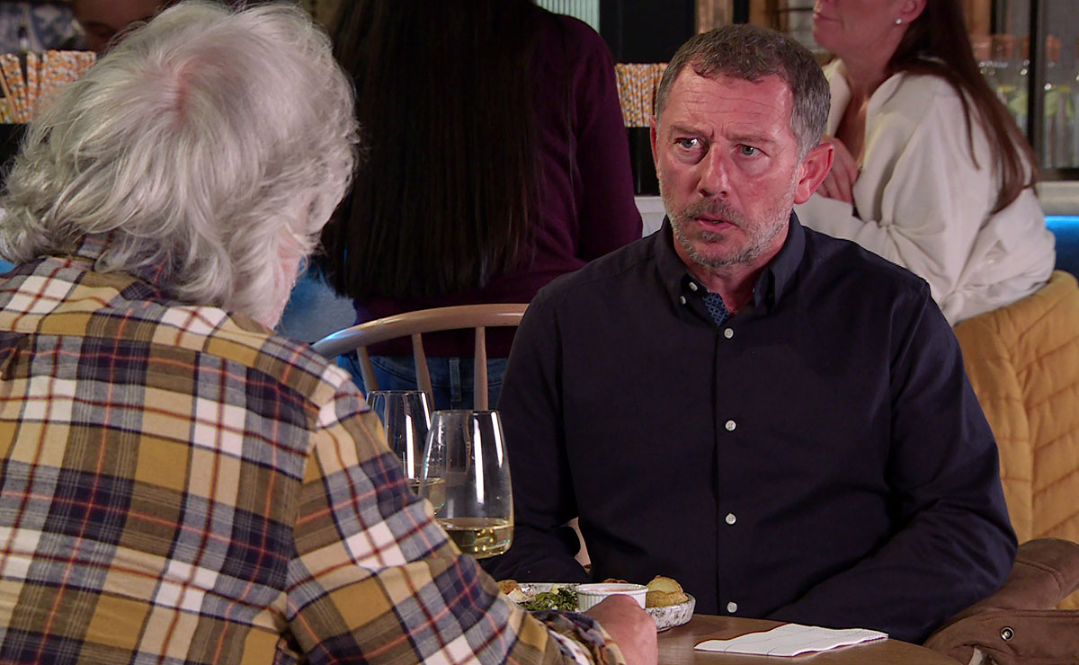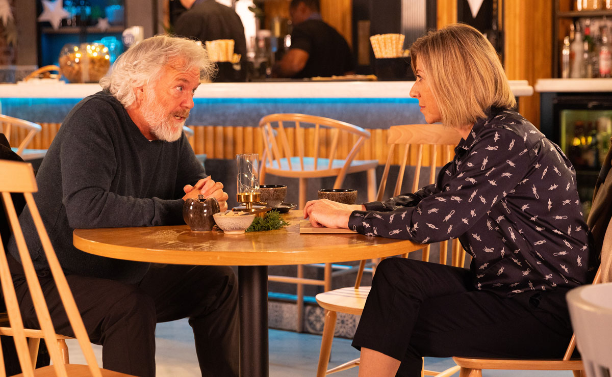 With this information in hand, Stu later lures Dom to a lunch at the bistro, where he brings up Dom’s past in Germany. Stu then offers Dom £10,000 to stay out of Eliza’s life, but will he be tempted to accept now that he’s gotten to know his daughter?
