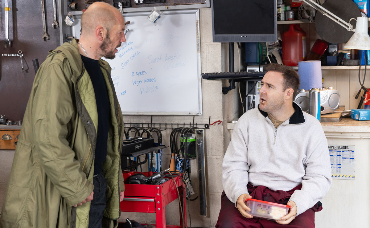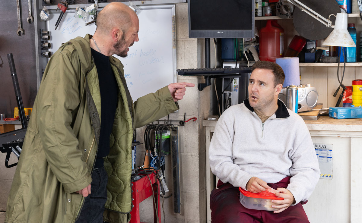 Tyrone soon finds himself in Terry’s line of fire too, and later in the week Terry pays him a visit at the garage. Handing over his contact details, Terry orders him to return the dog by 6pm otherwise he’ll regret it. By this point however, Roy (David Neilson) has already taken Taylor to the rescue centre.