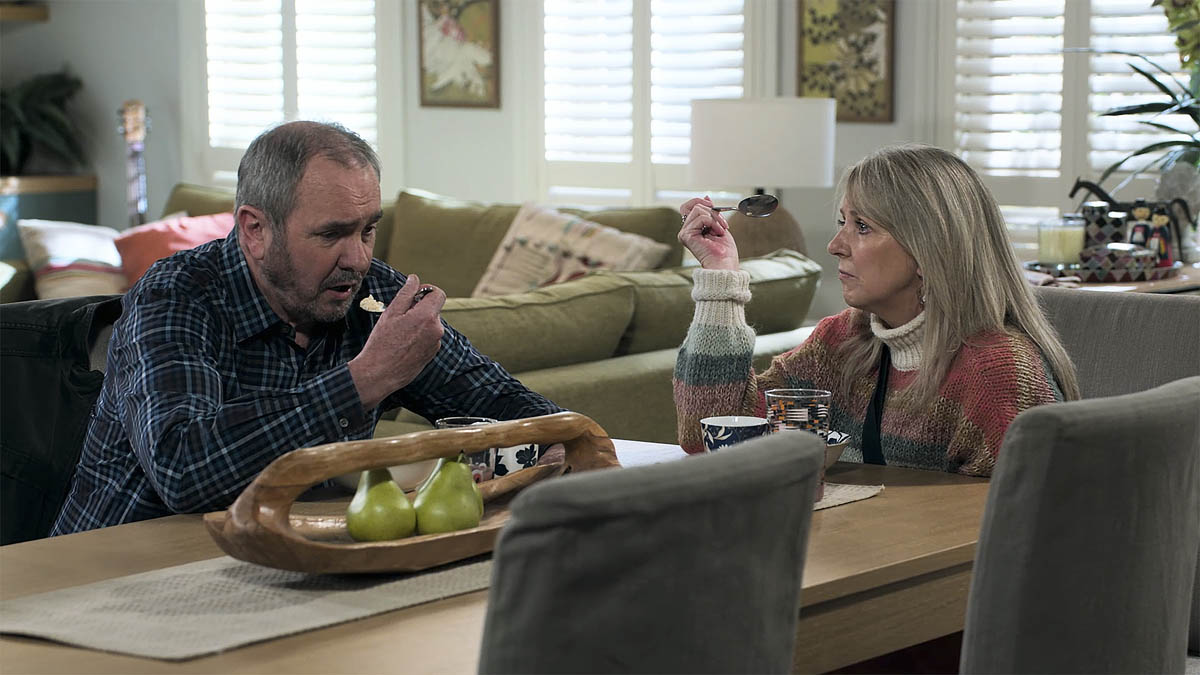 Photos show her examining a delivery of underwear, with seemingly no idea who’s sent them. The delivery comes after recent episodes saw her confused to discover a mysterious key in the doorway of her home at No. 24.