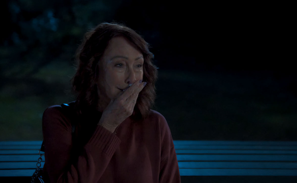 Harper and Dana later wonder whether Irene really meant what she said, and as we see Irene walk home alone from work, she sits down on one of the park benches and bursts into tears, feeling more alone than ever.