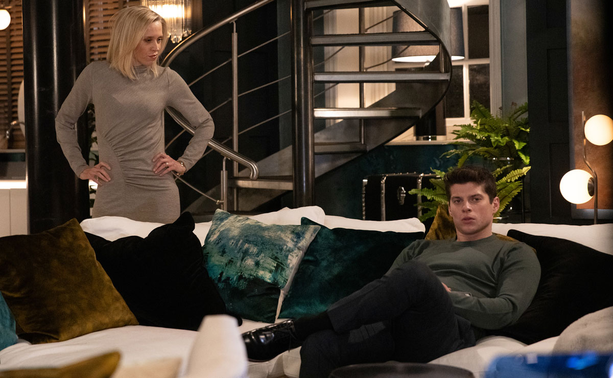 Tracy is horrified to learn that Nate is staying with Caleb, dreading that their secret will be revealed somehow. When Cain (Jeff Hordley) tries to boost Nate’s mood, Nate comments that he thinks Tracy has been seeing someone else.