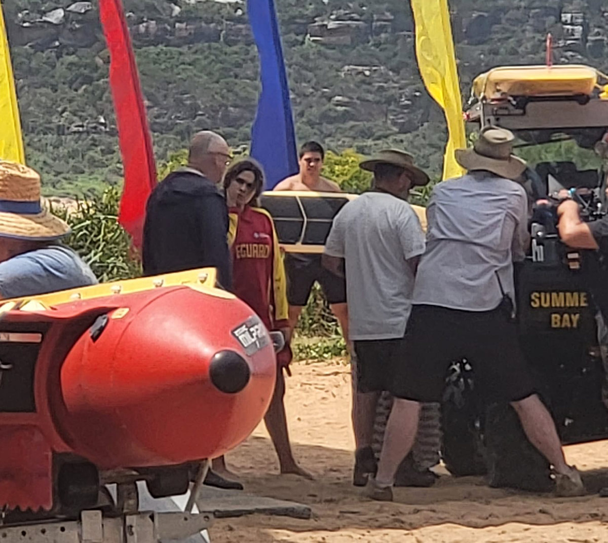 Pictures and video taken by fan Michelle Matthews in early November saw Ally Harris in full lifesaver uniform, filming scenes in which she rushed into John’s prized Can-Am, which had its flashing lights on.