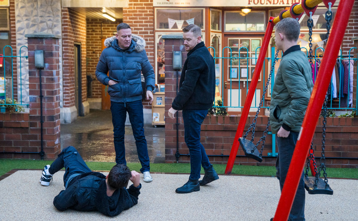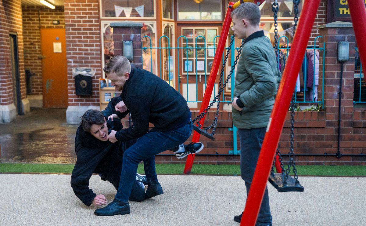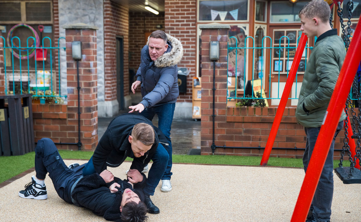 Over at the precinct, Gary bumps into Mason in the playground, who goads Gary and warns him that Liam needs to watch his back. Mason clearly doesn’t know who he’s messing with, and as Gary’s anger boils over, he throws Mason to the floor whilst Dylan watches on in shock.