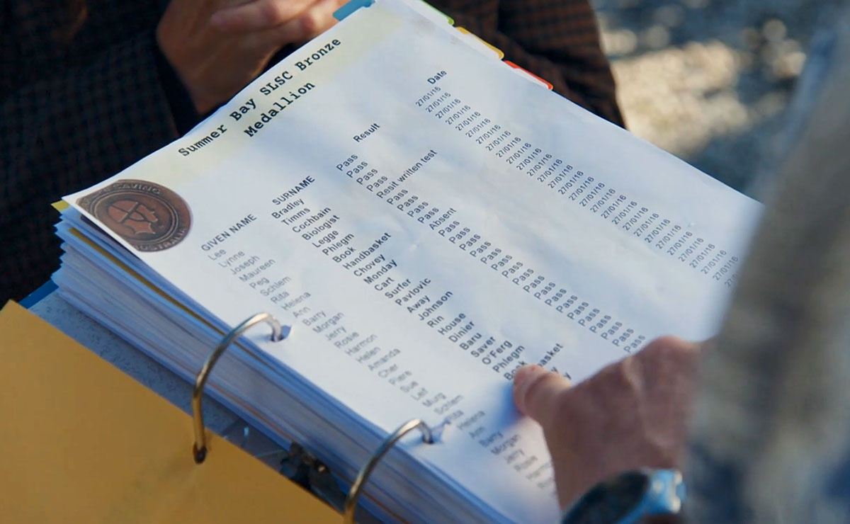Roo later puts her plan into action by showing John the ‘Surf Club Bible’ that he’s put together over the years, hoping that the reminder of his loyal service and the names of all the students he’s taught will be enough to entice him back.