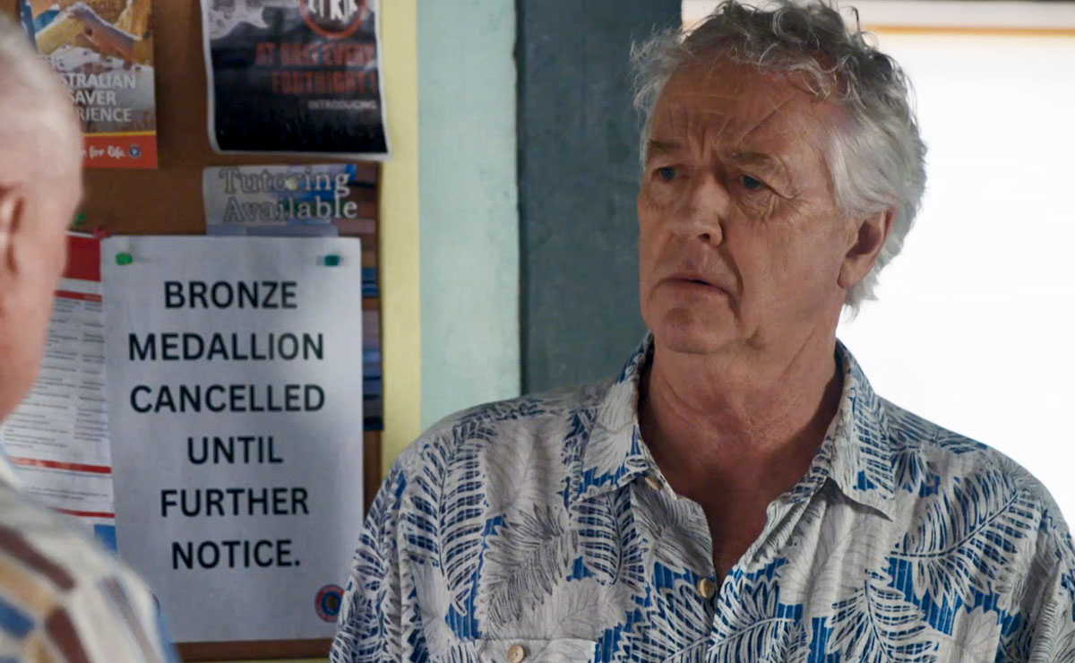 John (Shane Withington) was heartbroken when an executive committee meeting recently banned him from teaching his bronze medallion lifesaving course, after student Banjo Henderson (Michael Cameron) made a complaint about him.