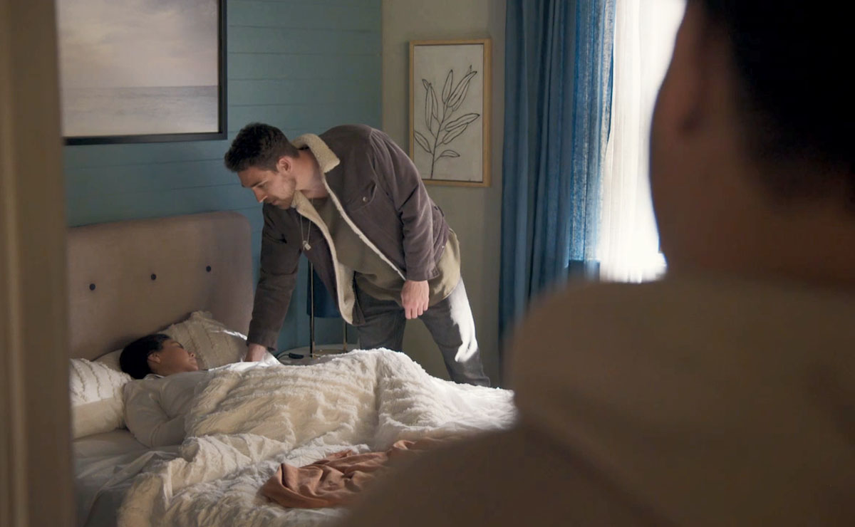 Having checked on Mac, who appears to be fast asleep, Mali tells Xander what’s happened and how worried he is about her.