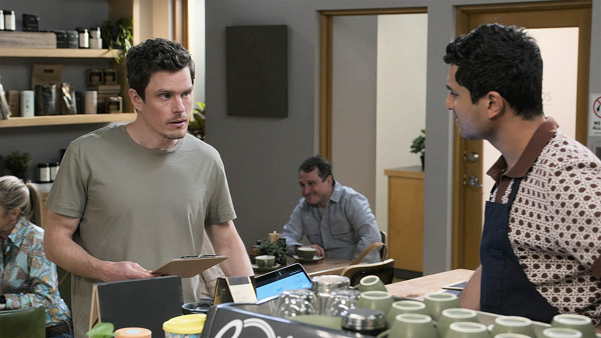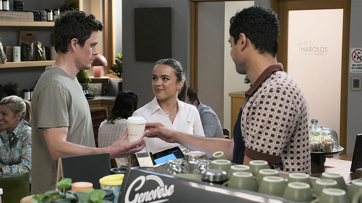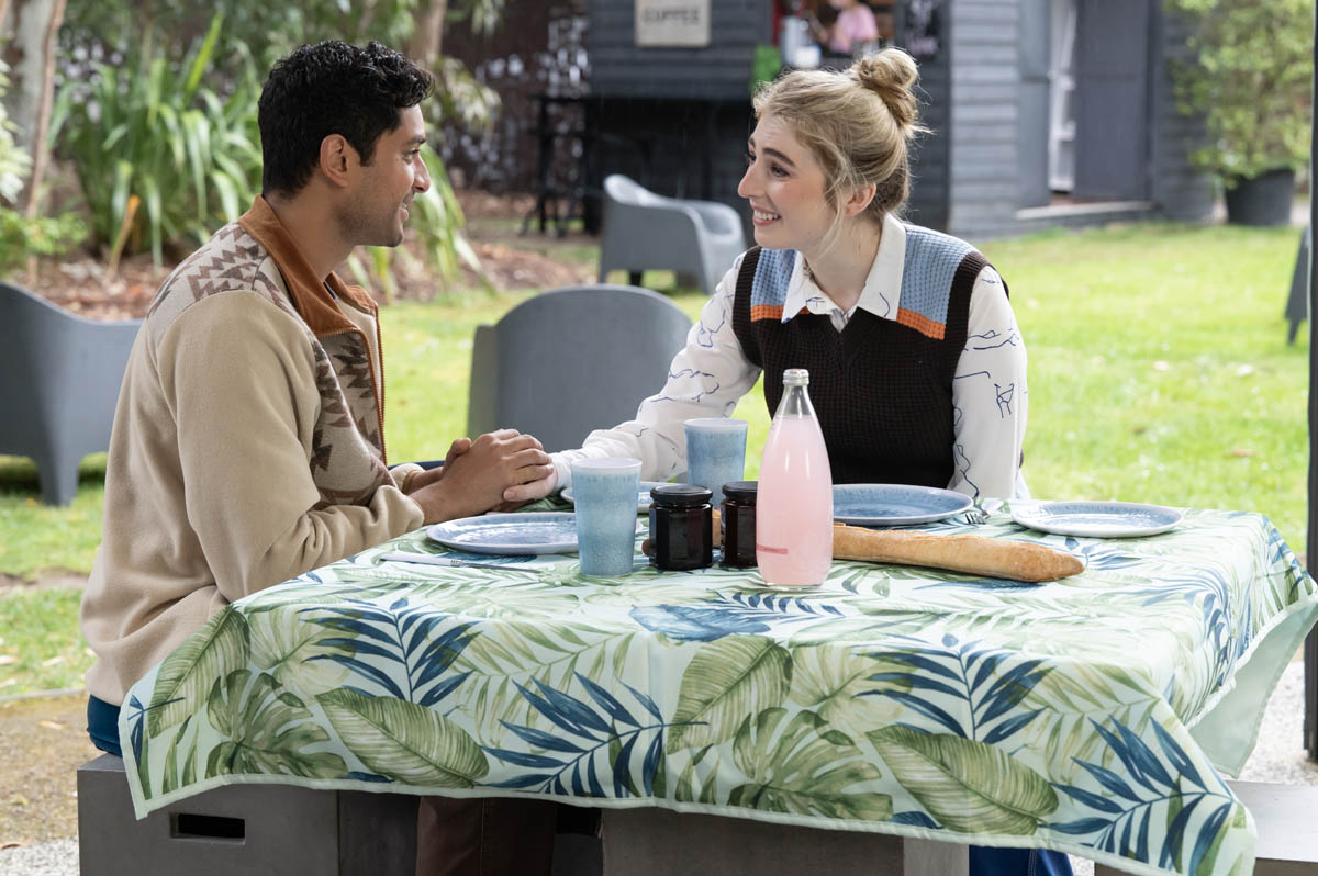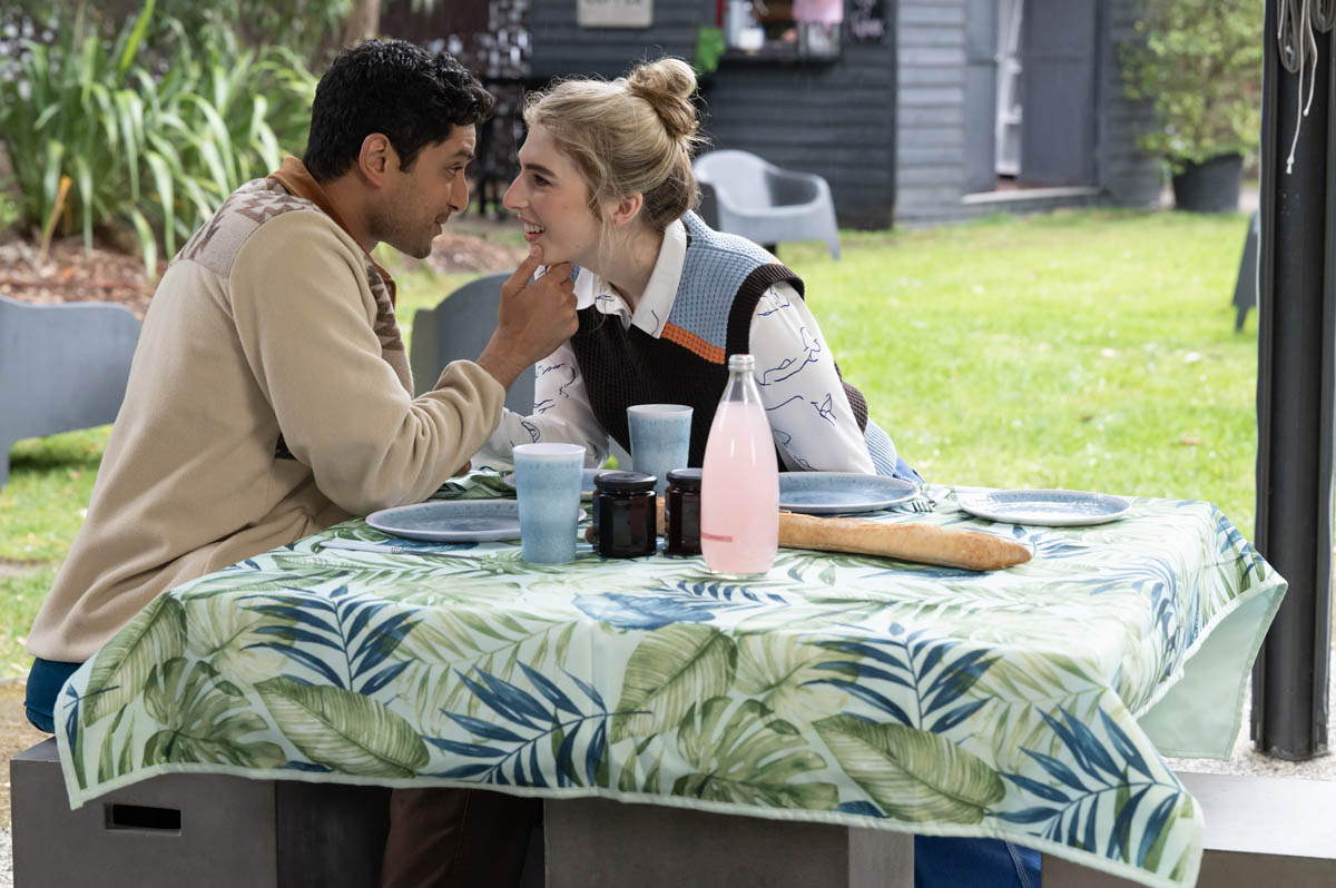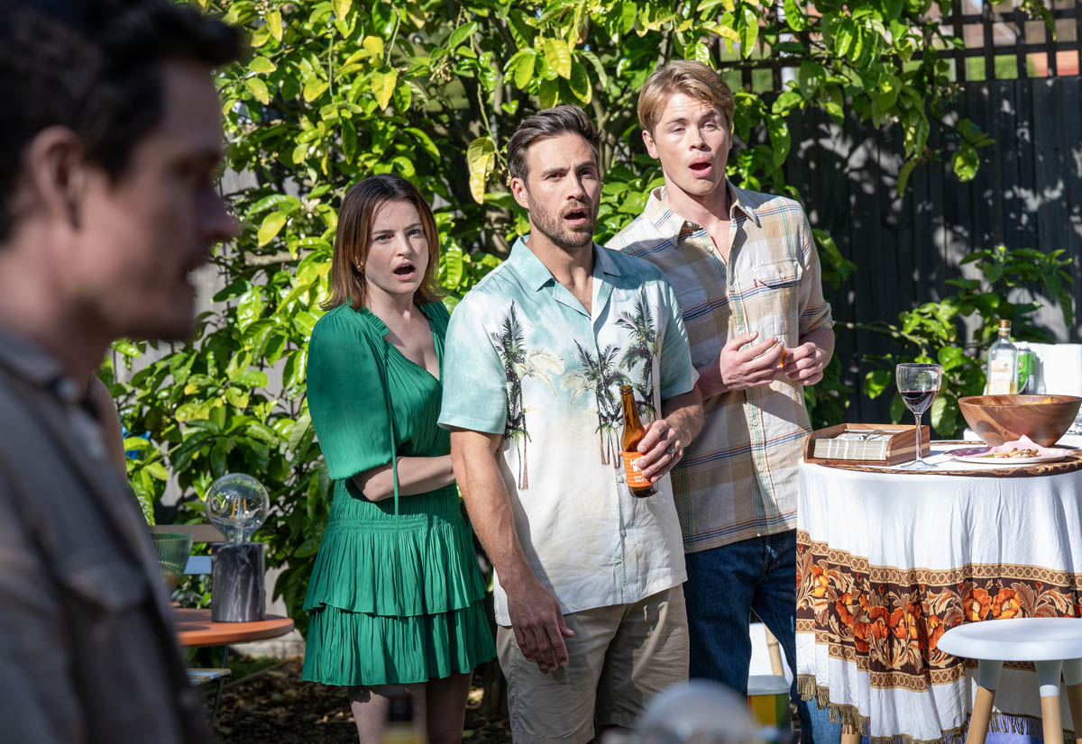 The pictures also see Felix forming connections on Ramsay Street, as we see him chatting with Haz (Shiv Palekar) and Holly (Lucinda Armstrong Hall) at Harold’s, as well as getting himself an invite to a garden party at No. 32, where he invites along another new face, Jools (Eva Seymour).