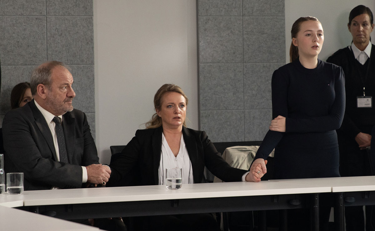 Elsewhere in the village, it’s another day of reckoning for the Kings, as Nicola (Nicola Wheeler) and Jimmy’s (Nick Miles) 14-year-old daughter Angelica (Rebecca Bakes) sentencing arrives.