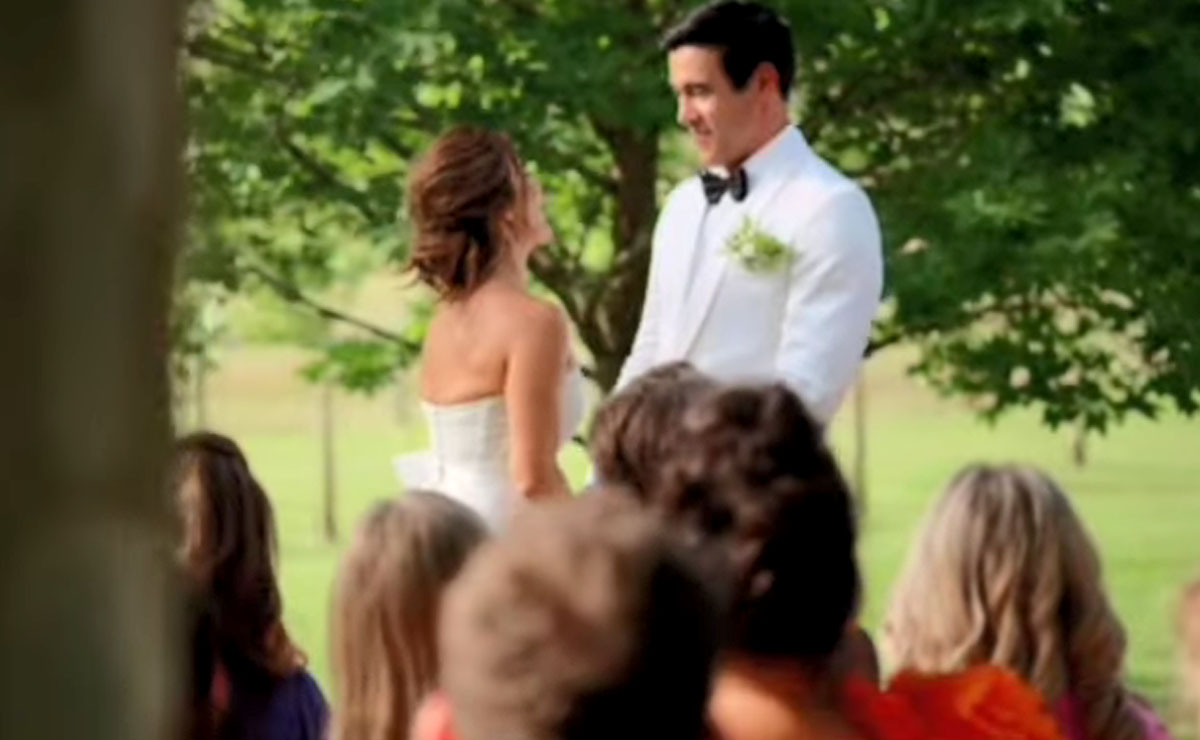 The dialogue as Justin and Leah say their vows is muted in the promo as the soundtrack, ‘The Wedding Song’ by Angus & Julia Stone, takes over.