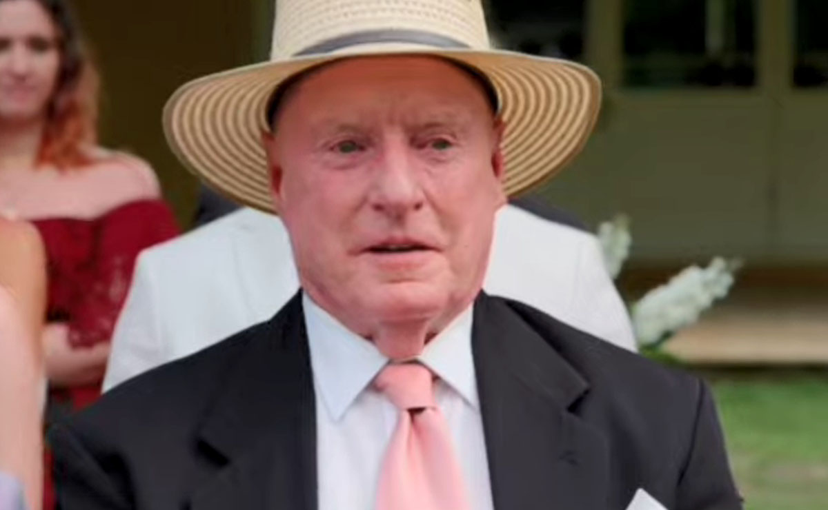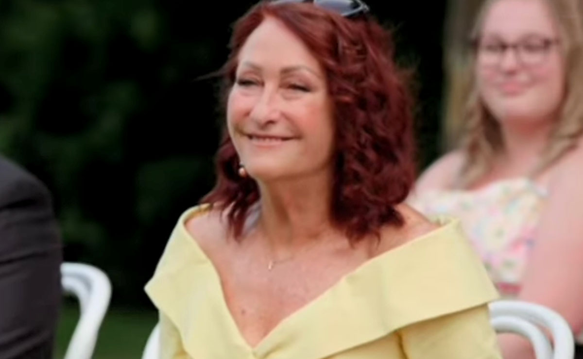 For someone who for many years was adamant that she would never get married again, Leah looks perfectly content as she takes in her surroundings and Alf (Ray Meagher) helps her out of the car.