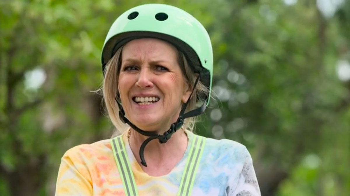 Last week, Melanie (Lucinda Cowden) was equally amused and disgusted when Karl was forced to stop their cycle around Erinsborough to relieve himself in a neighbouring garden – an emergency code brown.