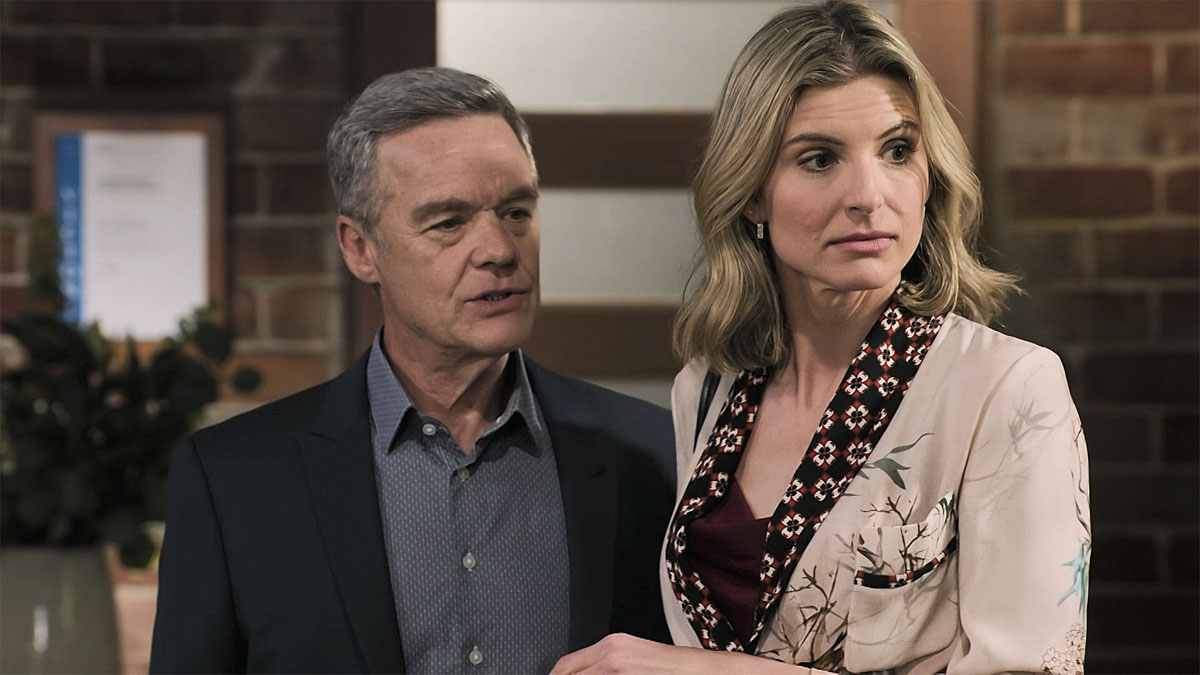 New spoilers images revealed by Amazon have revealed the true extent of Chelsea Murphy’s (Viva Bianca) grip over Paul Robinson (Stefan Dennis).