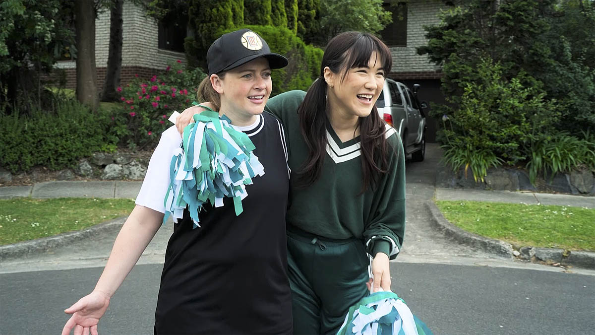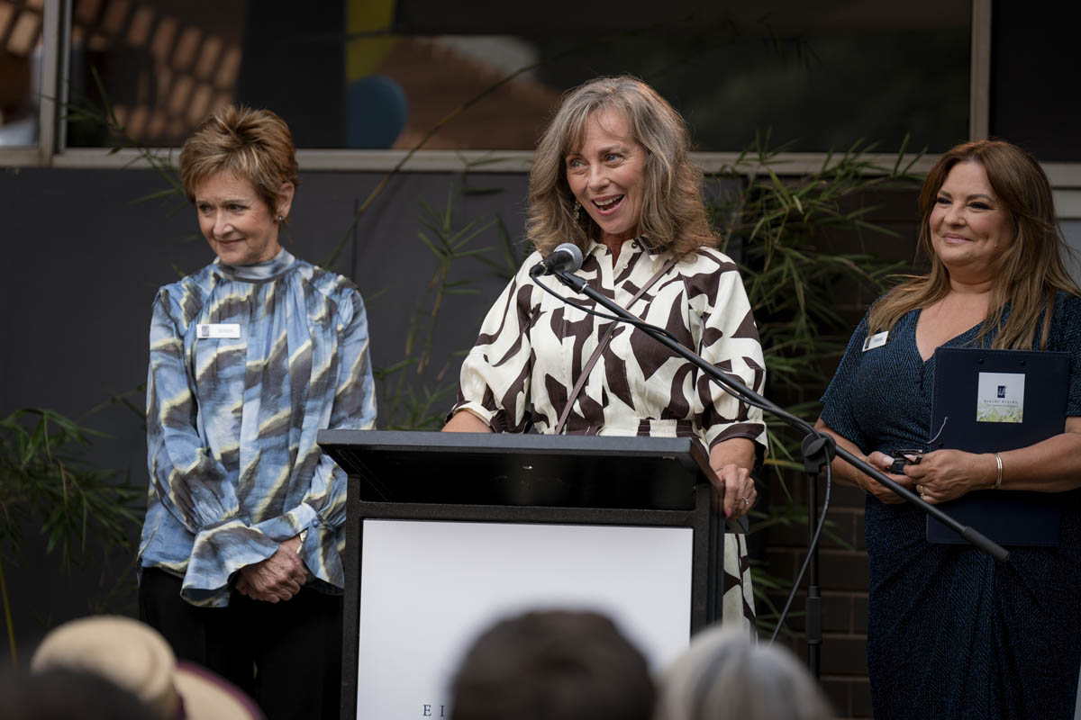 As the retirement village is officially opened on the grounds of Erinsborough High, Susan and Terese (Rebekah Elmaloglou) are flanked by pupils from the school as locals and the community’s new residents gather to celebrate.