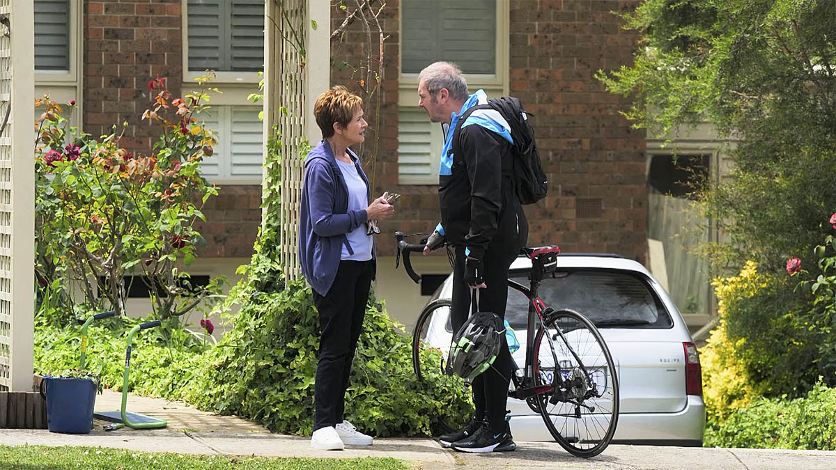 Her current fiancé Mike (Guy Pearce) hasn’t been seen for months, having extended his motorcycle tour of the UK on a number of occasions, despite Jane really needing his support as she battled to save Erinsborough High.