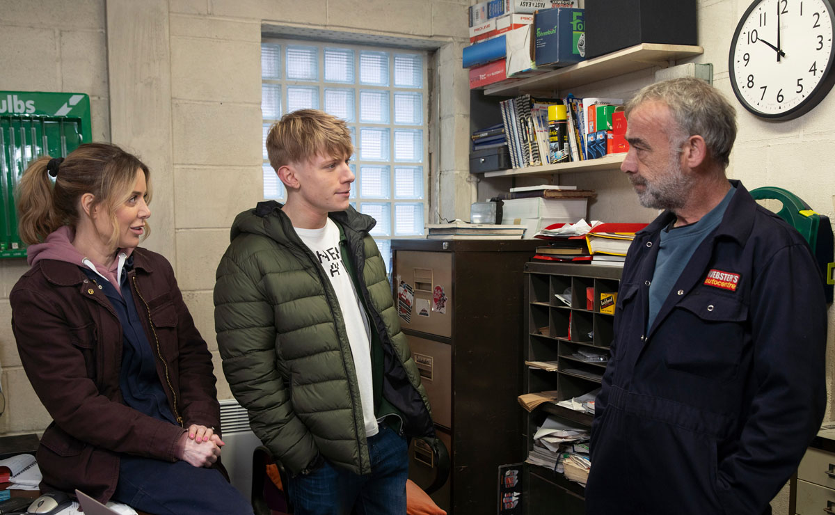 Also next week, with work having dried up at the garage, Kevin is urged to get with the times by sister Debbie (Sue Devaney) in getting a website for the business.