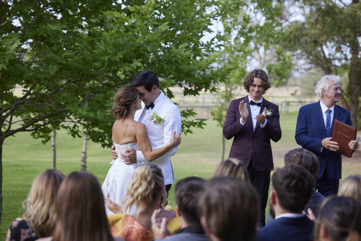 John invites Justin and Leah to say their self-written vows to one another, and following a rapturous applause from the guests, John is thrilled to finally announce them husband and wife!
