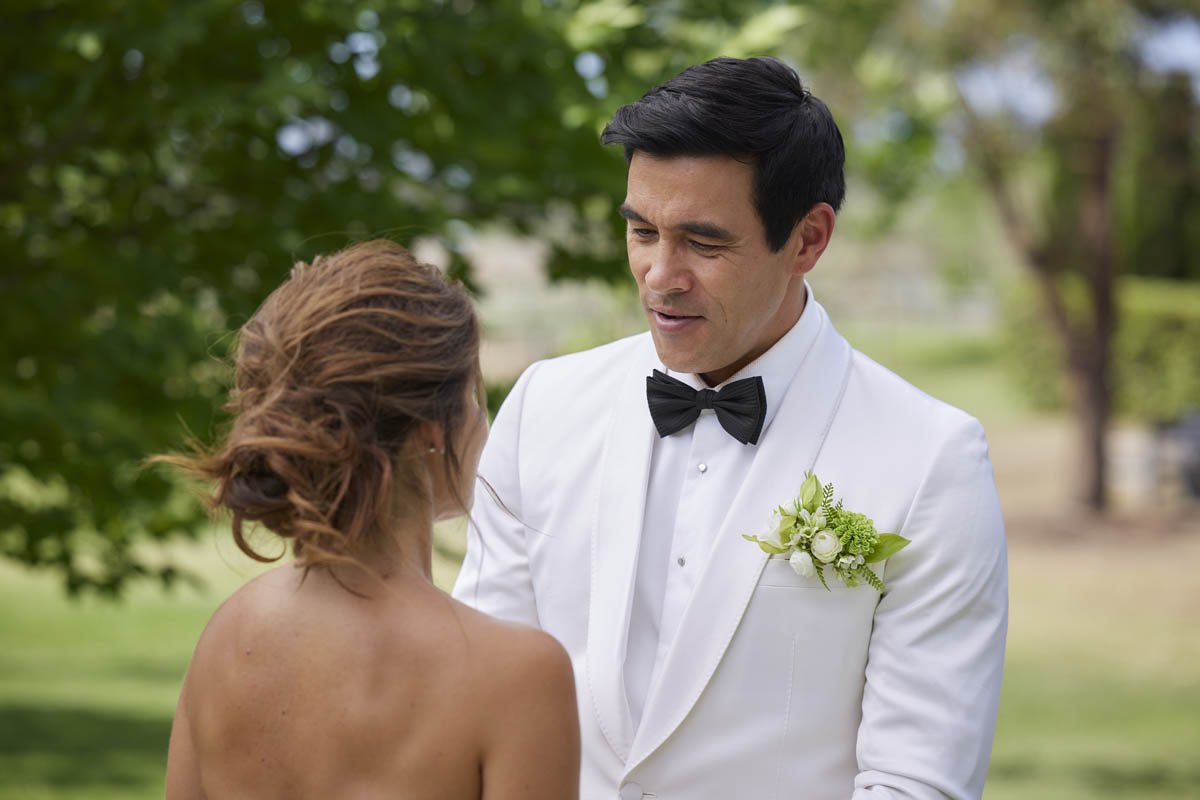 It’s been a long time coming, but Justin (James Stewart) and Leah (Ada Nicodemou) finally tie the knot next week in a beautiful vineyard ceremony.