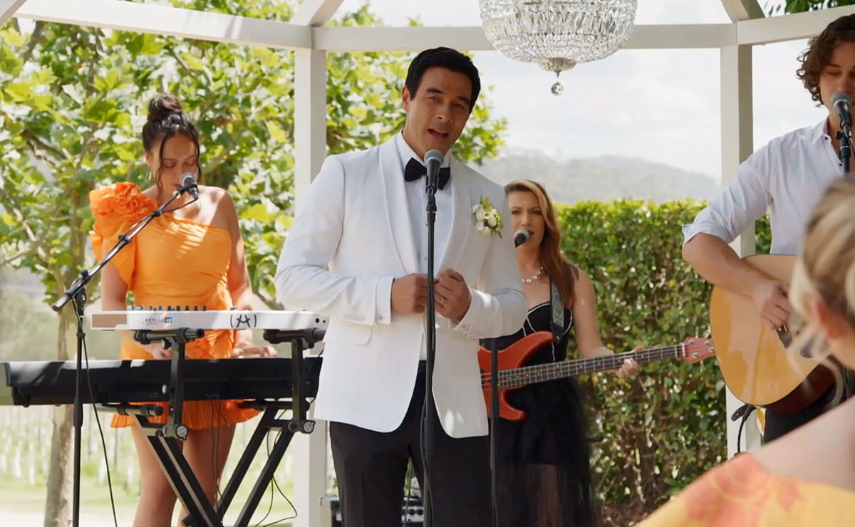 Justin then takes to the stage and performs his specially written song for Leah. As the party continues, John is revelling in his success as a celebrant, and making his way around the room for dancing partners.