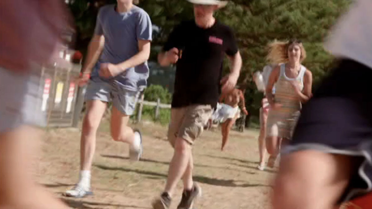Sidney makes his escape, with Alf yelling at everyone to get inside the surf club as he calls the emergency services.