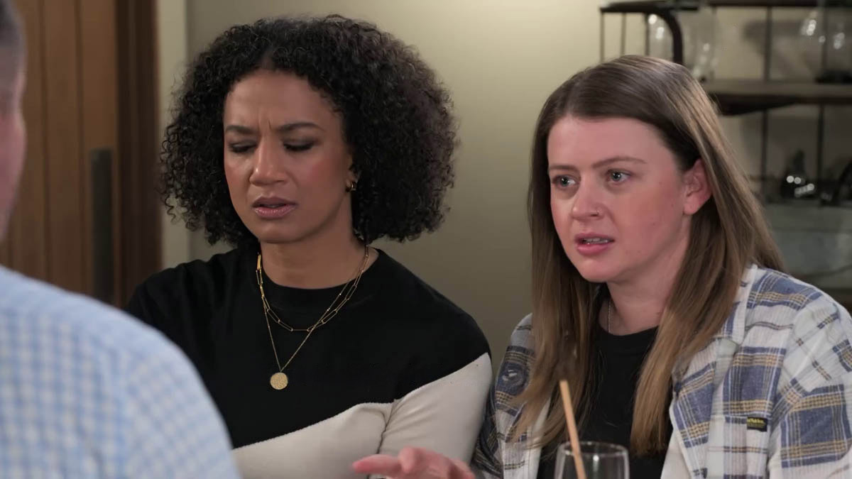 Holly (Lucinda Armstrong Hall) tries to calm Mackenzie’s frustrations, suggesting that she simply asks Amira for the time she needs with Haz.