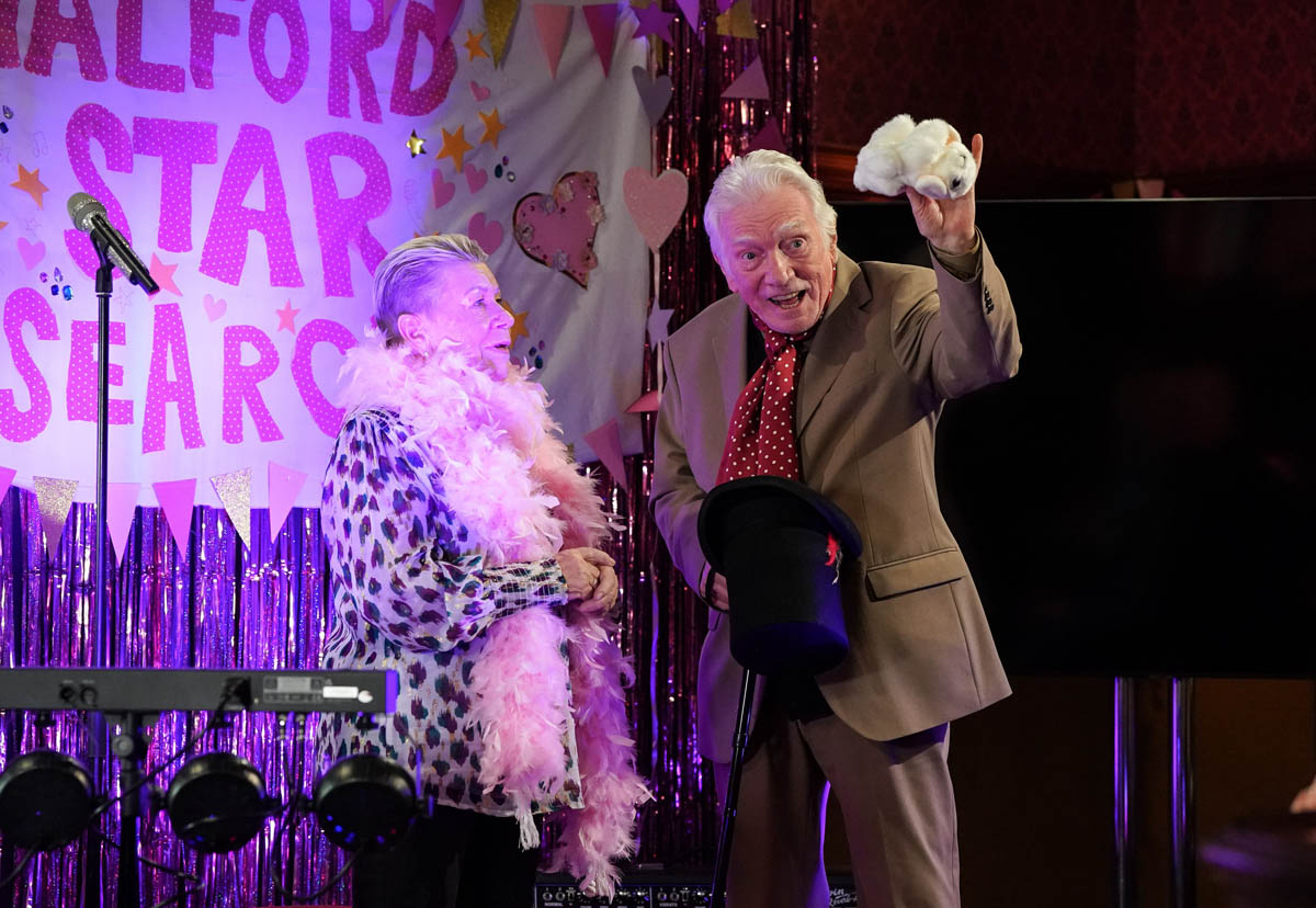 Mo manages to cheer up a miserable Stevie, and the pair entertain the Walford residents with a magic act, while Praya (Sophie Khan Levy) and Jay (Jamie Borthwick) impress with musical performances.