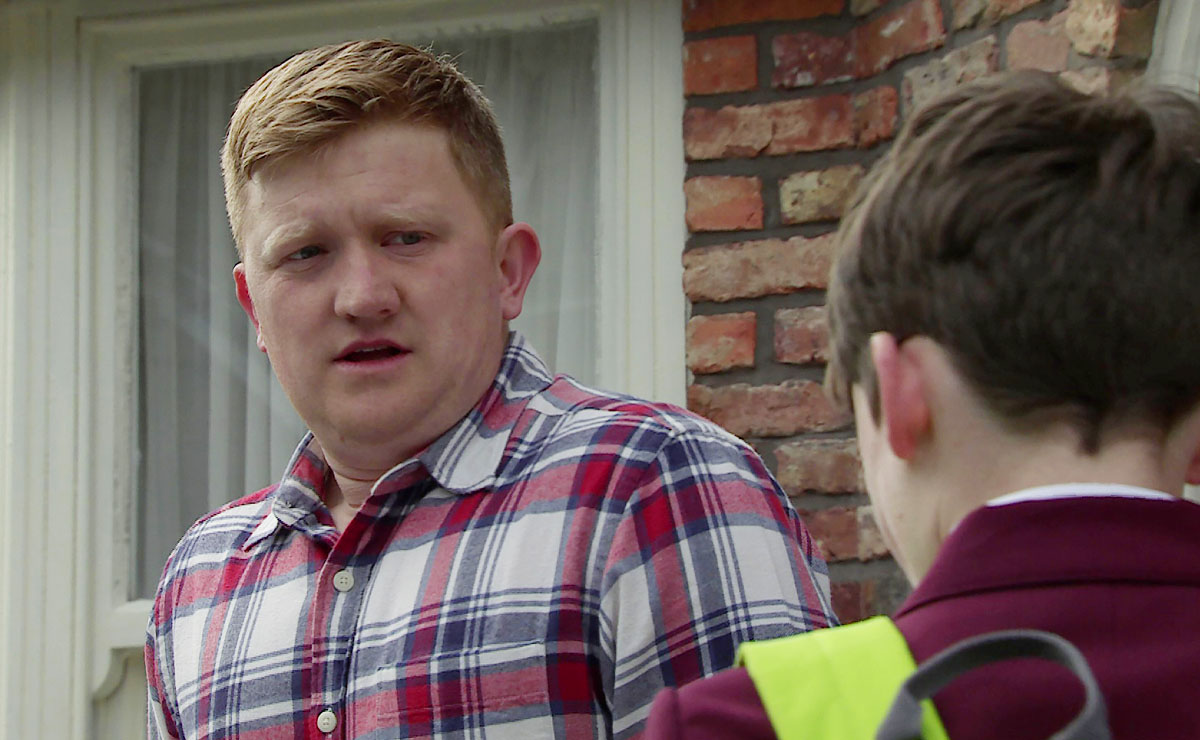 Elsewhere on the cobbles, it seems that a stranger has already seen through predator Joel’s (Calum Lill) facade.