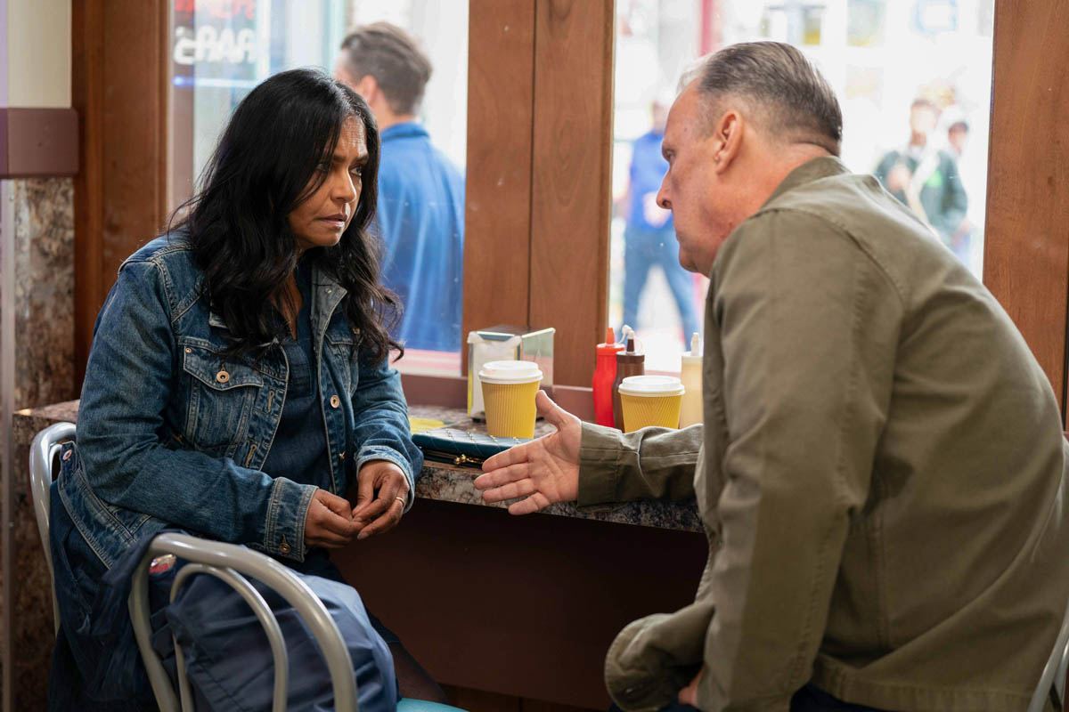 Jean (Gillian Wright) has been growing more and more suspicious of Harvey’s (Ross Boatman) new friend Maya (Bharti Patel) in recent weeks.