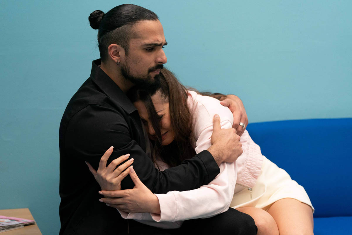 Ravi and Priya (Sophie Khan Levy) lean on each other for support as they wait for news, and it’s not long until they get an update.