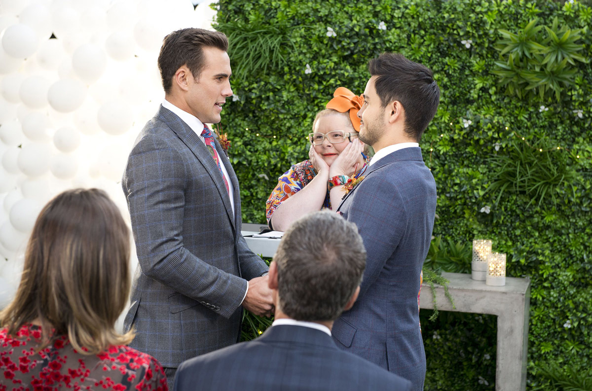 Since then, we’ve seen Logan looking at a picture of himself and David on his phone, and more recently we saw him looking through David and Aaron’s wedding photos, happy to be in the same location where they said their vows.