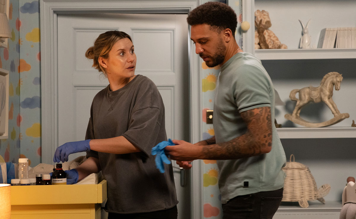 Elsewhere, the atmosphere remains fraught at Home Farm following baby Evan’s return home.
