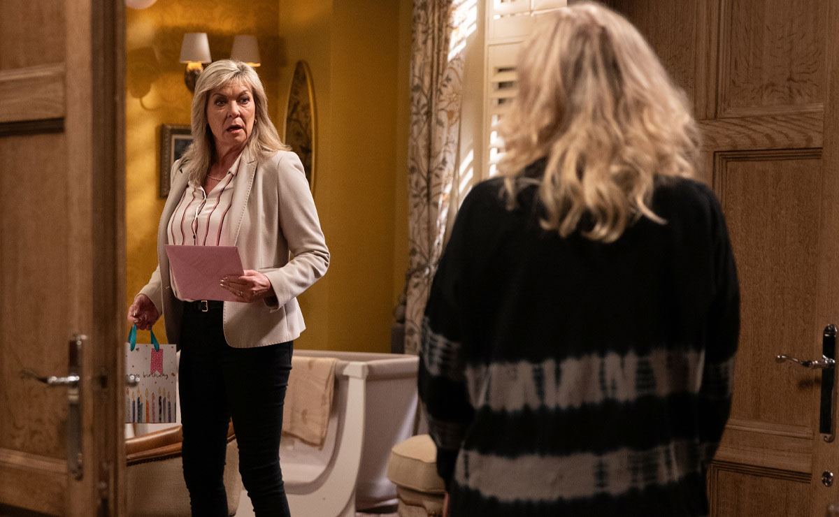 Over in The Woolpack, not wanting to see the ladies fall out, Gail (Rachael Gill-Davis) comes up with a plan to reconcile the two by organising another get-together… but is it doomed to fail?