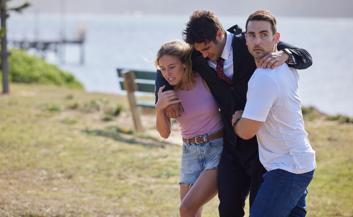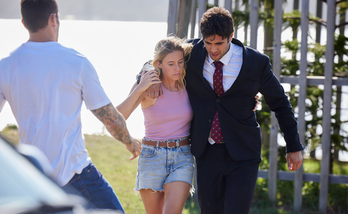 Down on the beach, Cash holds Stevie in his arms as they wait for the paramedics. Nelson thinks they should move her up to the surf club—they’re sitting ducks where they are—but Cash knows that it could do even more damage.