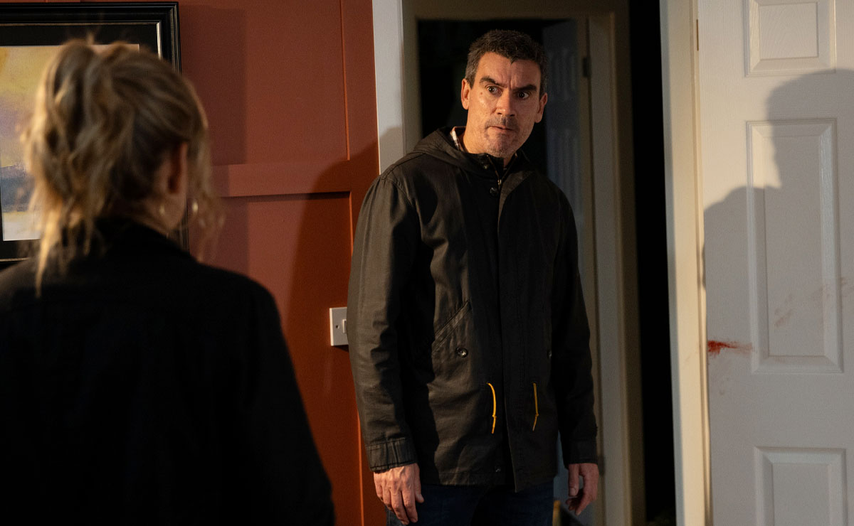 With her anxiety gnawing away at her, Charity goes to Cain to voice her concerns, noting that Tom’s demeanour reminds her of her own abuser, DI Mark Bails (Rocky Marshall).