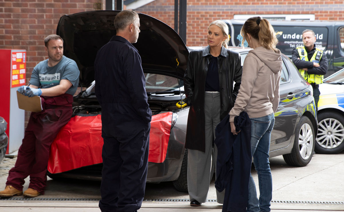 He isn’t the only one, with Lisa (Vicky Myers) calling by the garage the next morning in order to take both Kevin and Abi down to the station to question them about the arson attack.