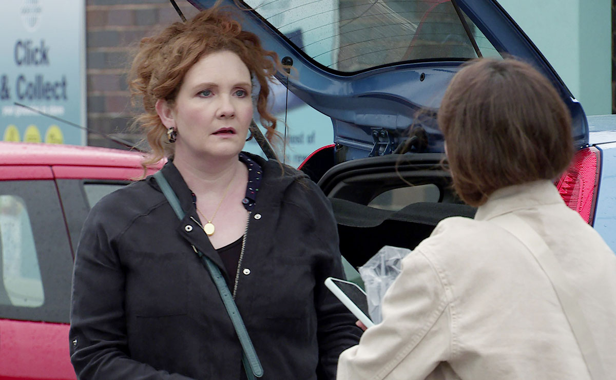 Tyrone’s mum Cassie (Claire Sweeney) takes a different stance however, when she takes a booking for Alina whilst in the cab office. Deviously taking Steve’s (Simon Gregson) cab, she heads to pick up Alina herself… before driving her straight to Coronation Street!