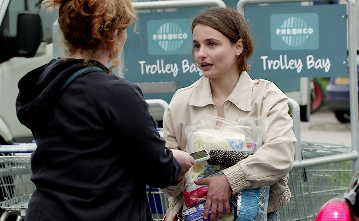 Next week, having finally retrieved the t-shirts, Beth delivers them to Sid (Michael Jinks) in the ginnel, but is spotted by policeman son Craig (Colson Smith) and his superior Kit (Jacob Roberts). Beth’s mortified as they approach and ask what’s going on.