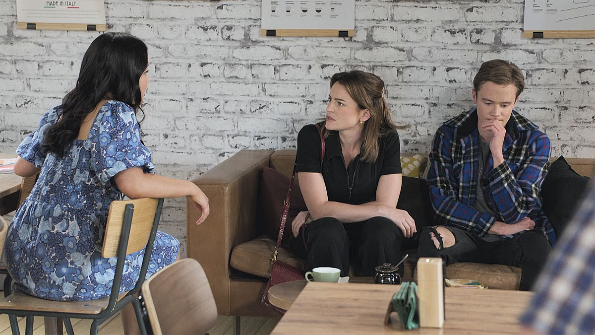 Similarly, Byron (Xavier Molyneux) and Sadie (Emerald Chan) look loved up as they perch on the sofa. There’s nothing to say that these episodes follow the usual linear timeline, but would they really be in the mood to celebrate if they knew Mackenzie had been shot?