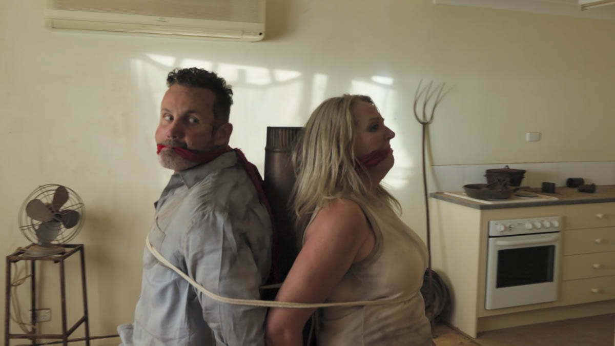 Somewhere in the remote wilderness, Toadie and Melanie find themselves held captive in an abandoned building, their arms and legs bound to an old gas stove.