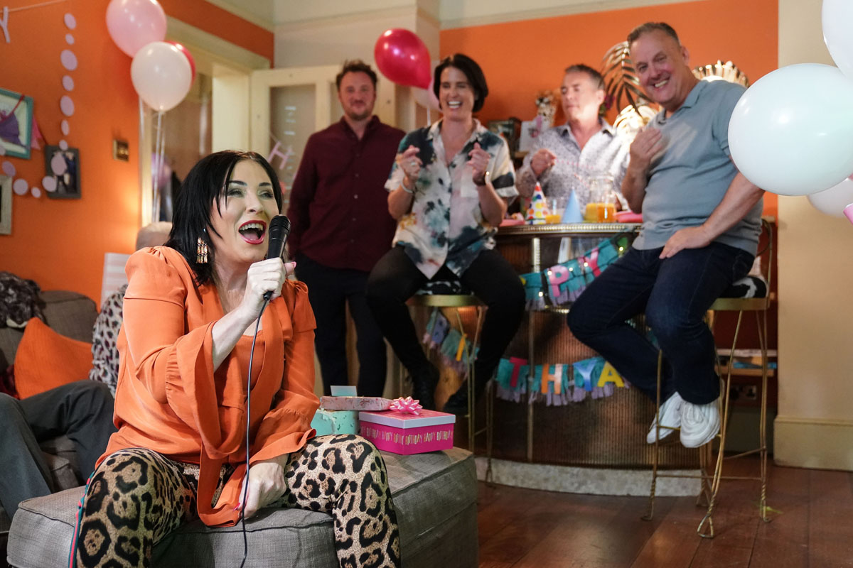 Later, The Slaters gather at No. 31 as Charli’s karaoke party gets underway. Some of the residents manage to get into the party spirit, but things soon go pear-shaped when a shock phone call sees Stacey forced to leave the celebrations…