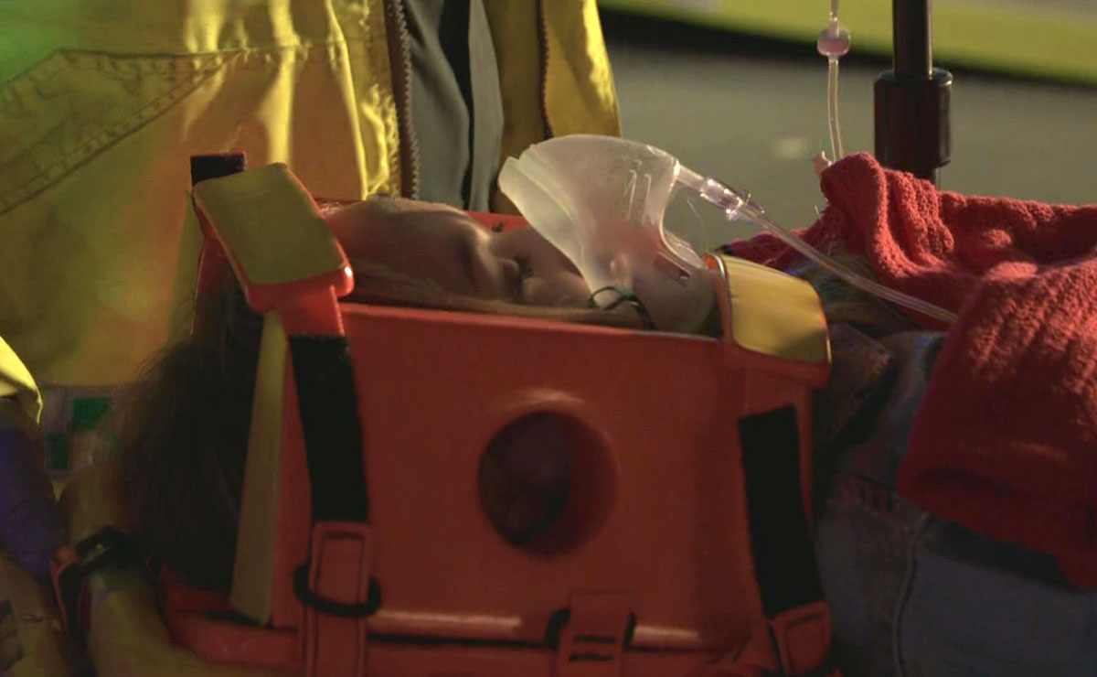 She was led out on a stretcher, leading to panic for Jack (Scott Maslen) as he realised how serious his daughter’s condition was.
