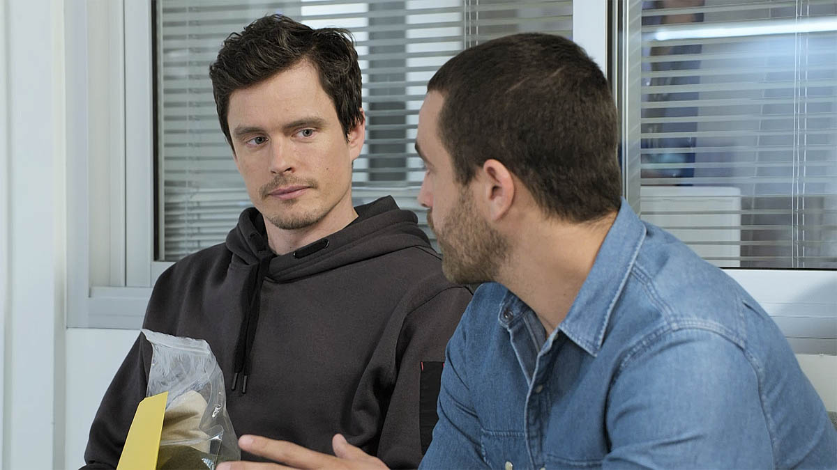 Intriguingly, the new photos also show him out of prison and back in Erinsborough, as he holds a bag of clothes after being given the all-clear.