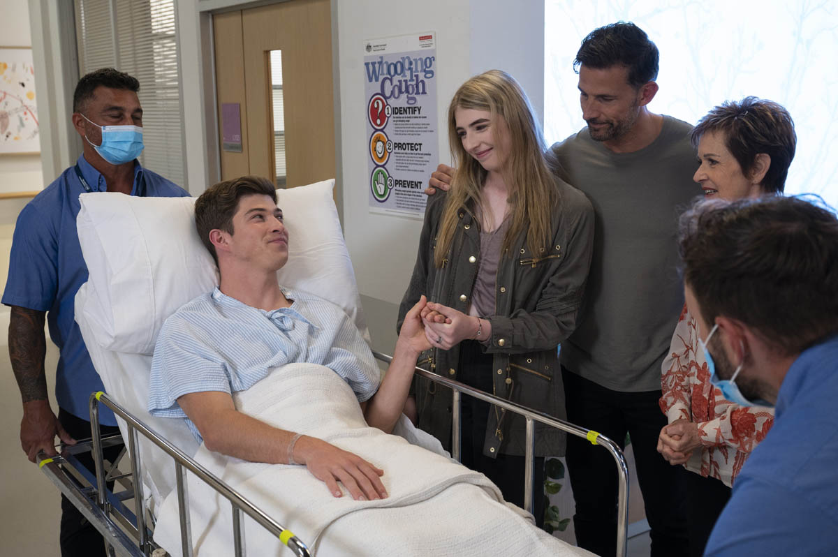 Their friends and family watch on, including new couple JJ (Riley Brtant) and Nell (Ayisha Salem-Towner), whose fledgling relationship is finally revealed to the world in the coming weeks.