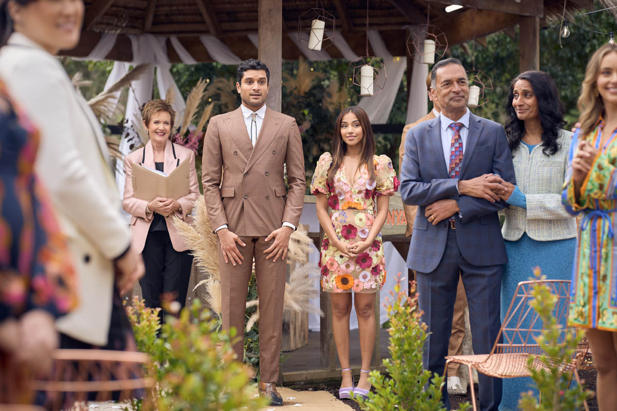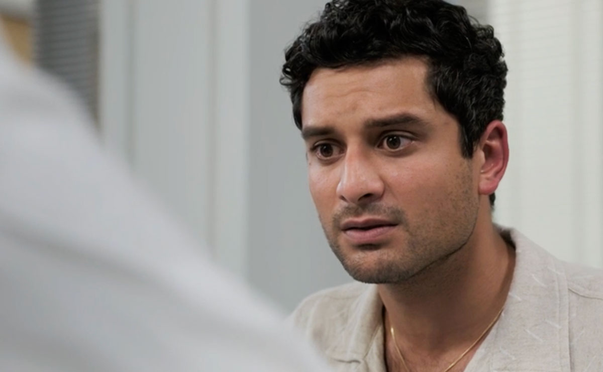 Waiting at the other end is Haz, who has been joined by sister Amira (Maria Thattil), and parents Sanjeev (Mark Silveira) and Reena (Camille Gautam).