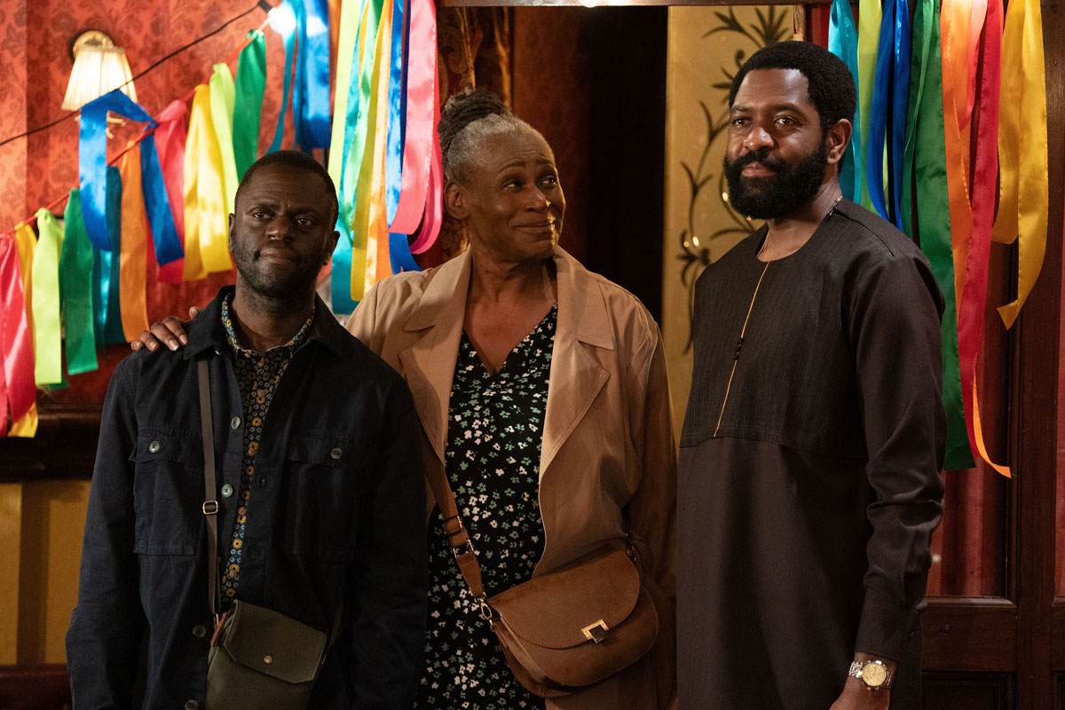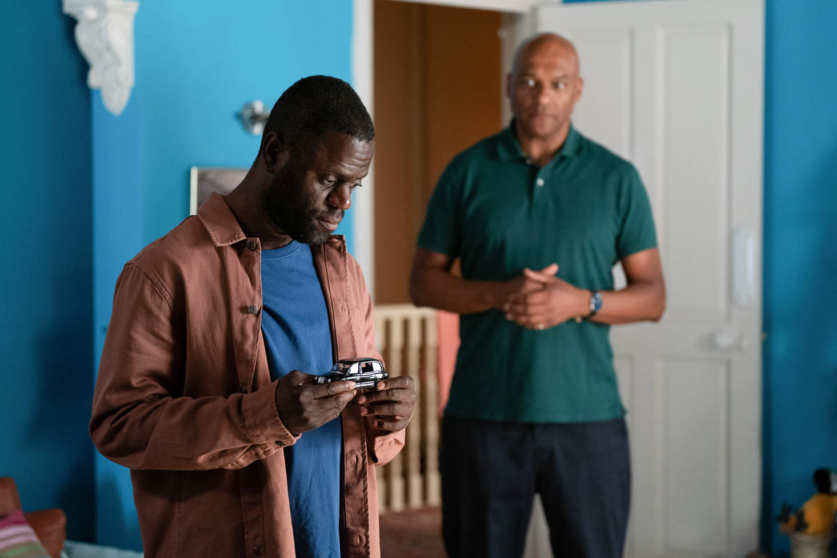George heads to make Kojo a drink as he attempts to diffuse the situation, but while his back is turned, Kojo slips out. When George returns to find Kojo missing, he’s distraught and blames Elaine for causing his brother to run away again.