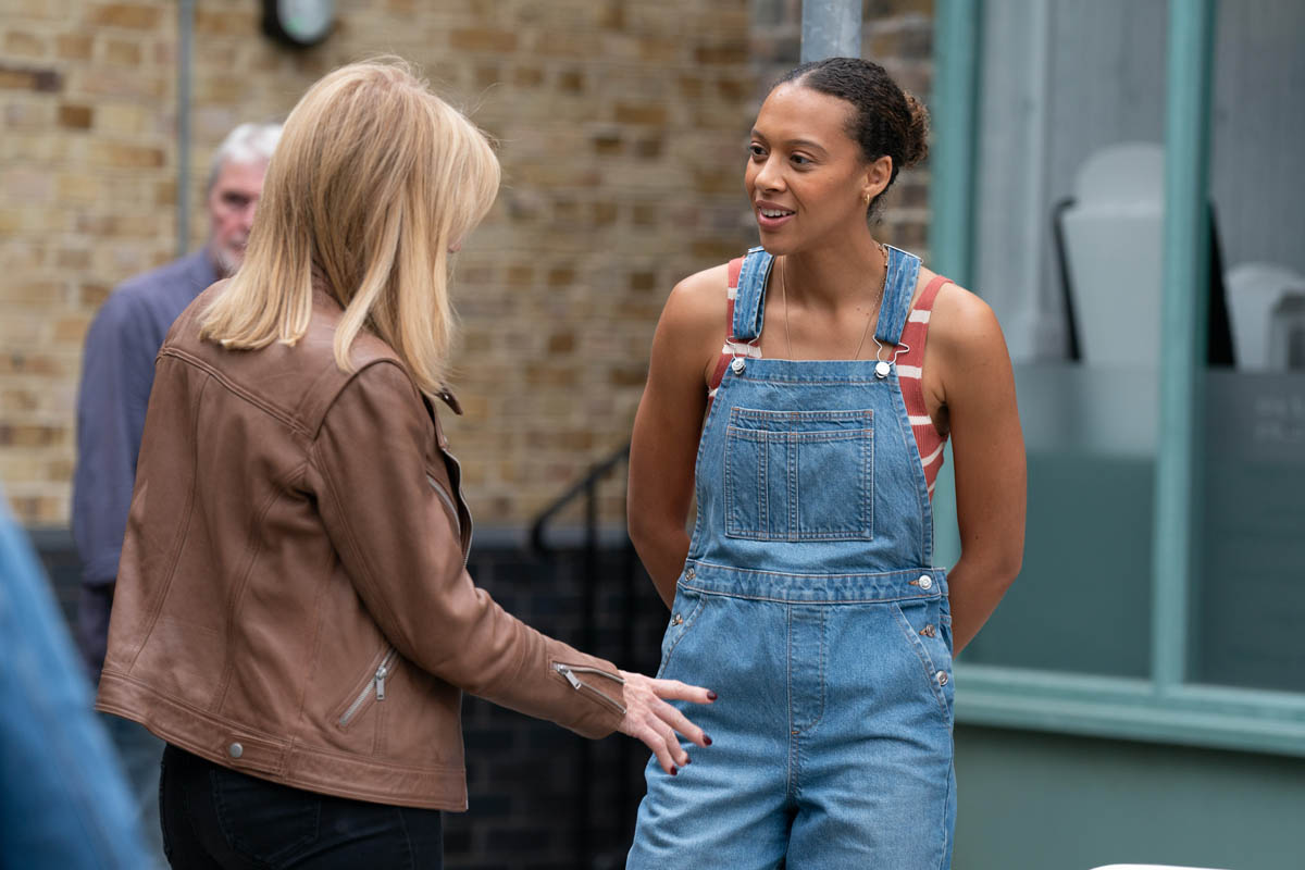Next week, a difficult conversation leaves Elaine (Harriet Thorpe) shaken up.