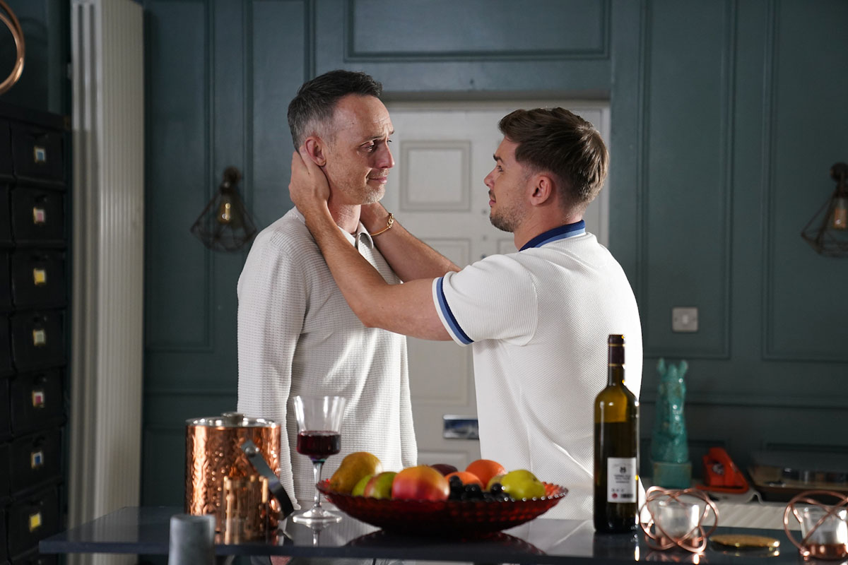 Back in the village, Ste (Kieron Richardson) and James (Gregory Finnegan) reconciled following James’s discovery that his headaches weren’t a brain tumour as he thought, but rather high blood pressure.