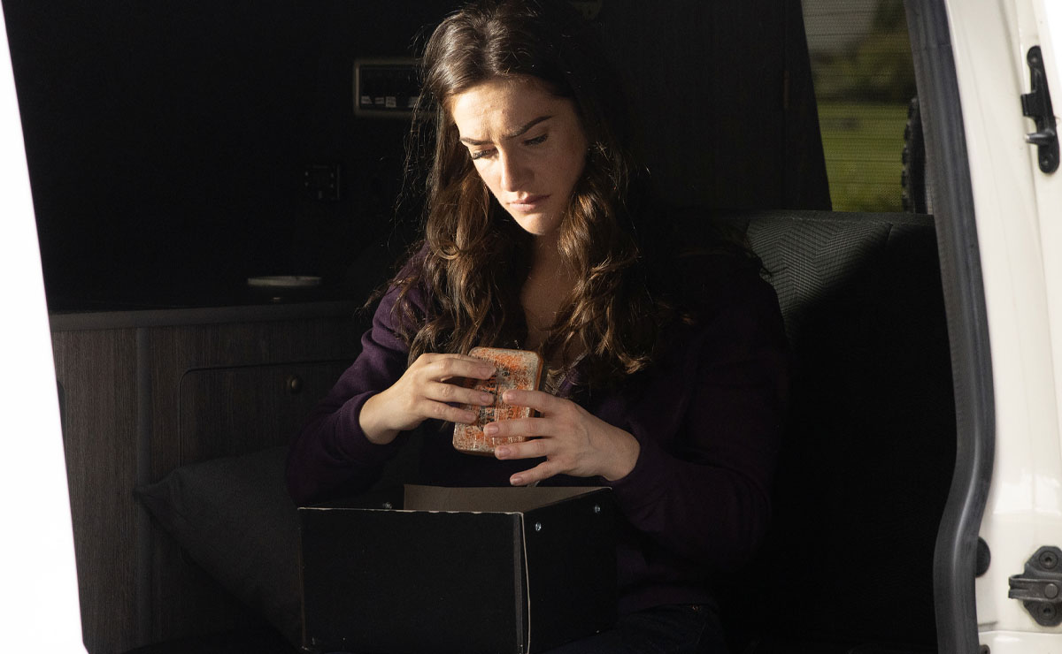 When Victoria later heads over to apologise to John, she finds his van empty, and can’t resist having a little shifty around.