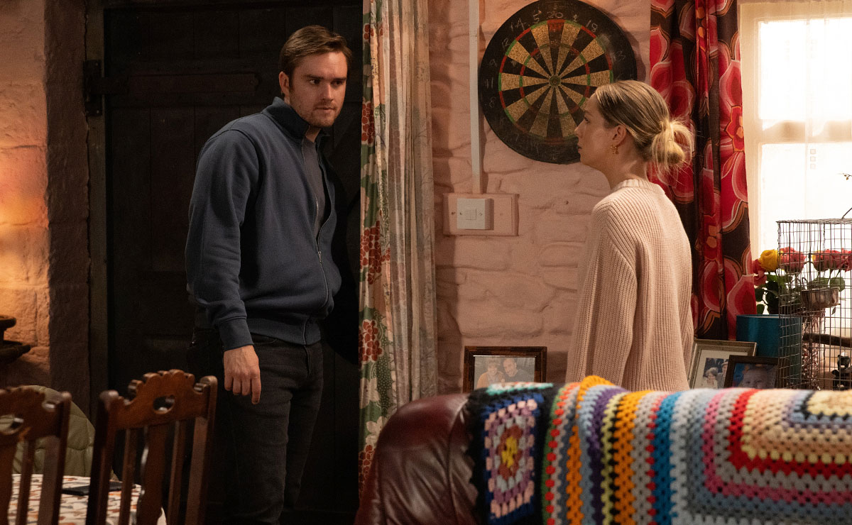 Next week on Emmerdale, Belle is cornered by Tom, Victoria discovers John’s secret, and Charles’s quarrel with Laurel takes an unexpected turn.