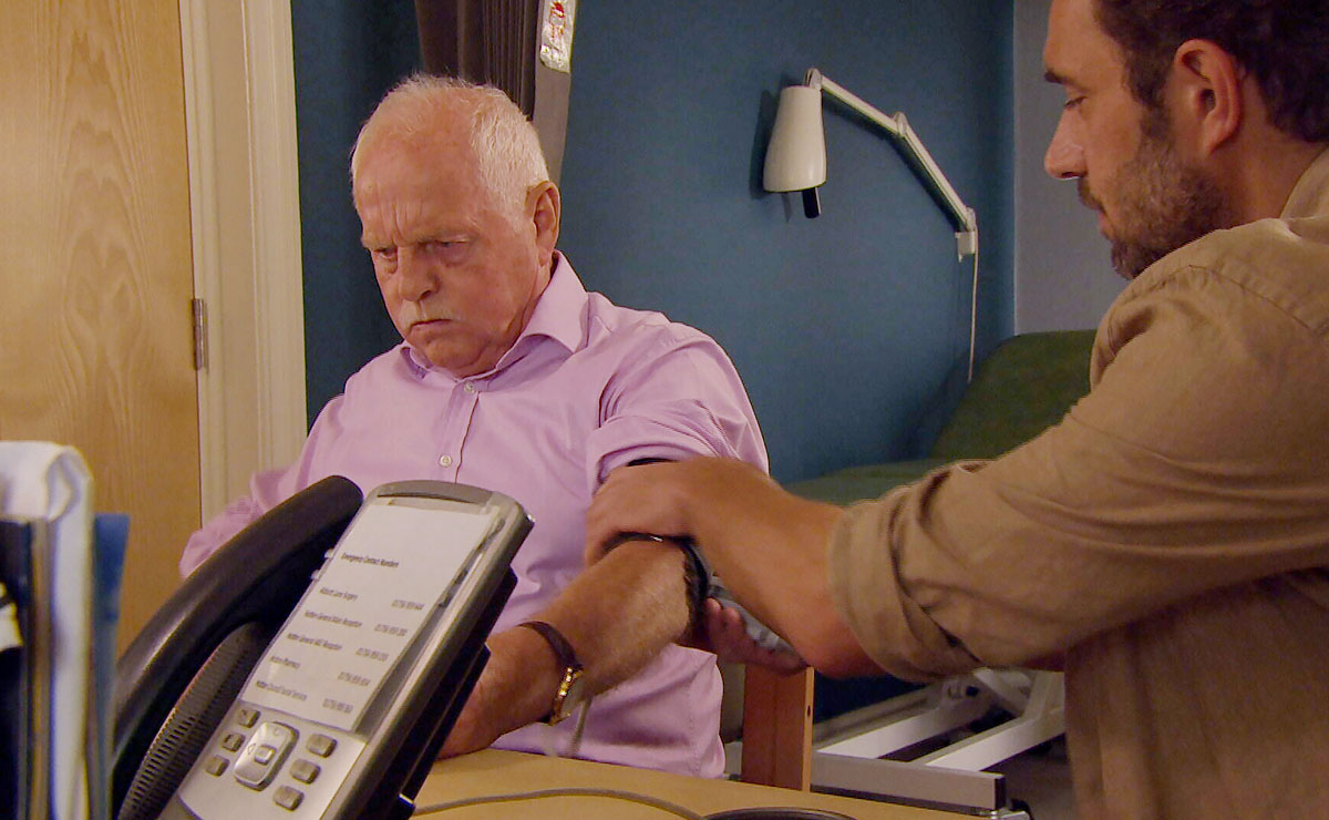 Whilst at Brook Cottage surgery, Eric displays some discomfort which John immediately recognises as signs of an angina attack.