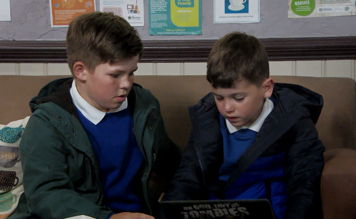 This week saw the tablet come into the possession of 7-year-old Isaac (Bobby Dunsmuir), after he took it from Tom’s cousin Carl (Charlie Joyce) to finish a game the pair were playing in the cafe.
